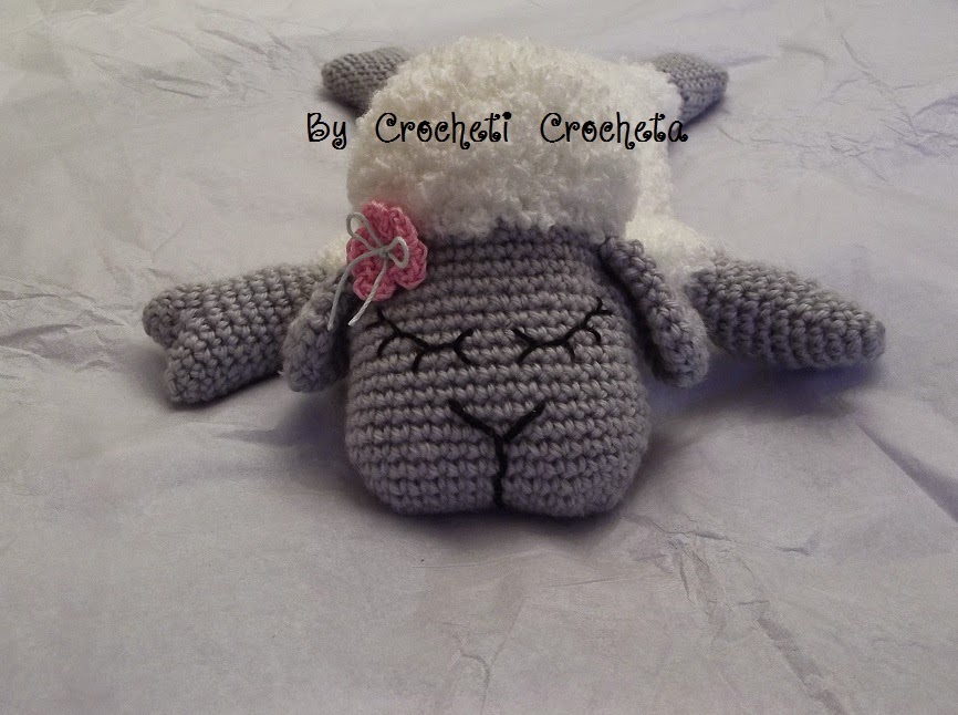 Après moultes discussions, j'ai consenti à lui confectionner une copine. Par chance, la maigreur ne fait pas recette chez le mouton, je n'ai donc pas crocheté une brebis famélique mais bien une demoiselle bien dodue!