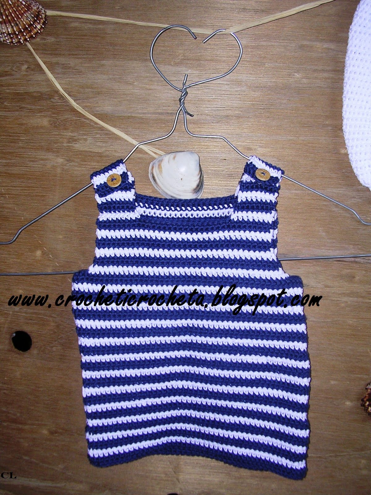 Il s'agit là d'une taille 3 mois mais cet ensemble est réalisable de la taille naissance à 18 mois et est personnalisable à souhait! Le béret de marin devait accompagner le tout mais je n'ai plus assez de coton...donc ce sera pour plus tard!