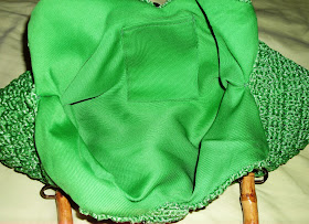 Voici mon joli sac vert au crochet et son noeud rouge amovible...Celui là ça va me faire mal au coeur de le vendre!!
