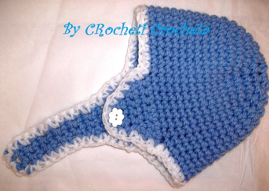 Voilà enfin le bonnet au crochet taille 6/9 mois "Comme une envie de ciel bleu..." terminé!
