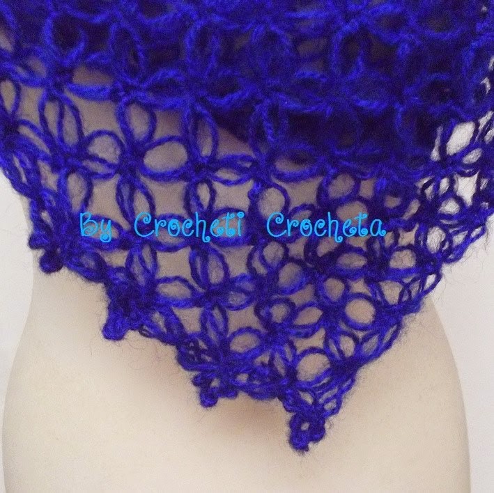 Une étole en laine mélangée mohair, couleur bleu roi, le tout au crochet fait main, au point salomon, facile et rapide!