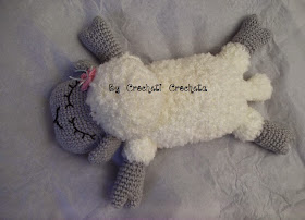 Après moultes discussions, j'ai consenti à lui confectionner une copine. Par chance, la maigreur ne fait pas recette chez le mouton, je n'ai donc pas crocheté une brebis famélique mais bien une demoiselle bien dodue!