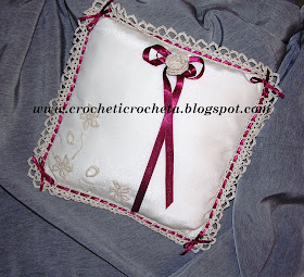 Coussin d'alliance au crochet, rose et motifs au crochet irlandais |